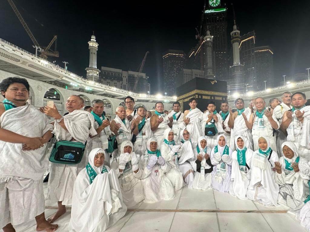 - Perlengkapan : Koper Kabin, Koper Bagasi, Tas Passport, Tas Sandal, Kain Ihram & Sabuk/Mukena, Bantal Leher, Buku Manasik, Kain Seragam, Syal